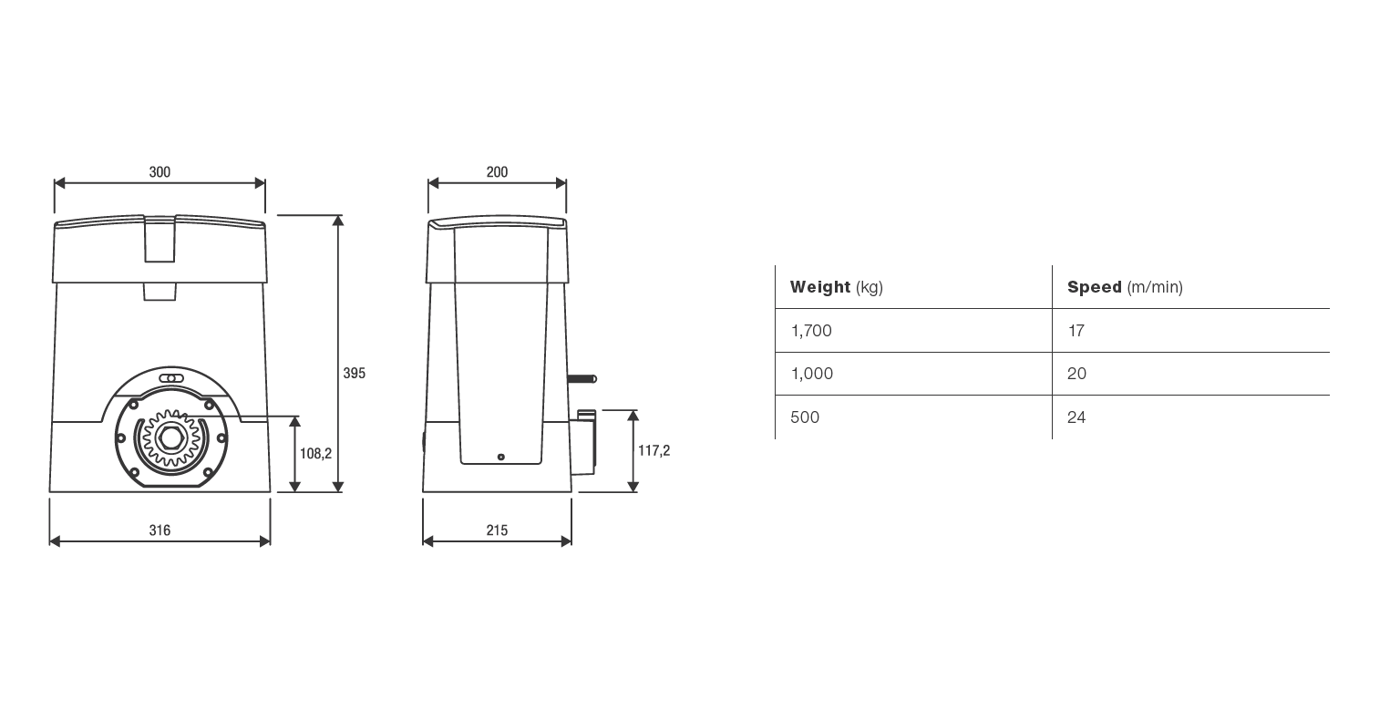 - Adjustable speed from 10 to 24 m/min according to gate weight