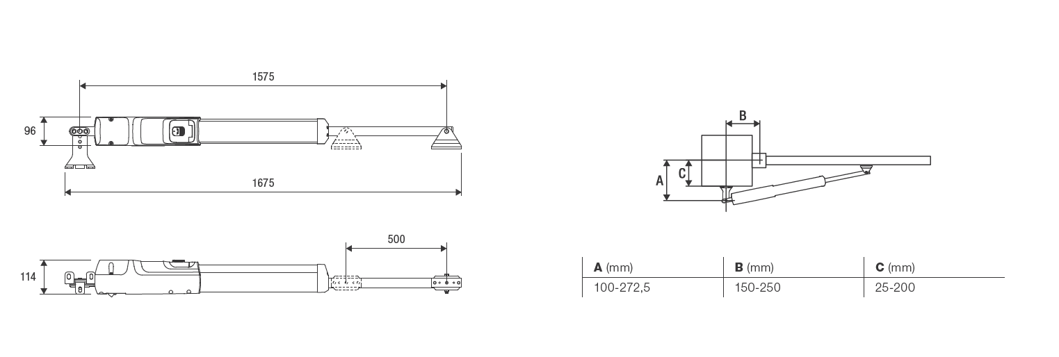 - Ideal for the automation of any type of swing gate thanks also to the compact footprints (only 96 mm width) and screw-in brackets