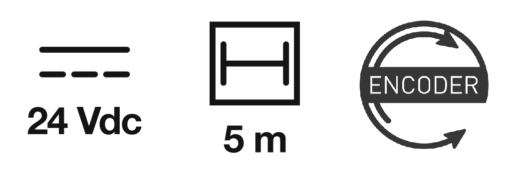 - Irreversible 24 Vdc electromechanical geared motor for intensive use, equipped with encoder